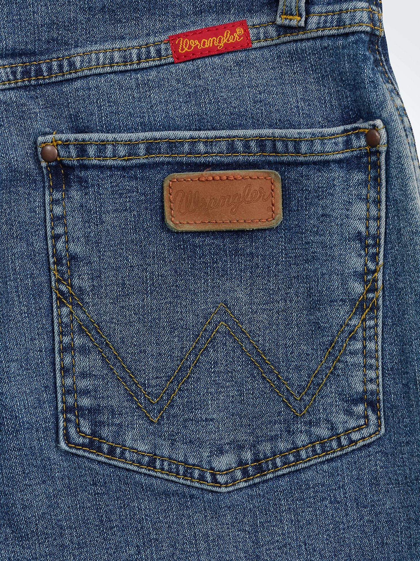 ЦветStonewashХарактеристика ткани98% хлопок, 2% спандекс, индиго деним диагональная саржа, 12 Oz.Кройузкий (slim fit)Крой от коленапрямые (straight leg)Посадка на талиивысокая (high rise)ЗастёжкамолнияКарманы5 без застёжекЗаклёпкина всех карманахБрендWranglerКоллекцияCowboy Cut®ПроизводительKontoor Brands Inc. -