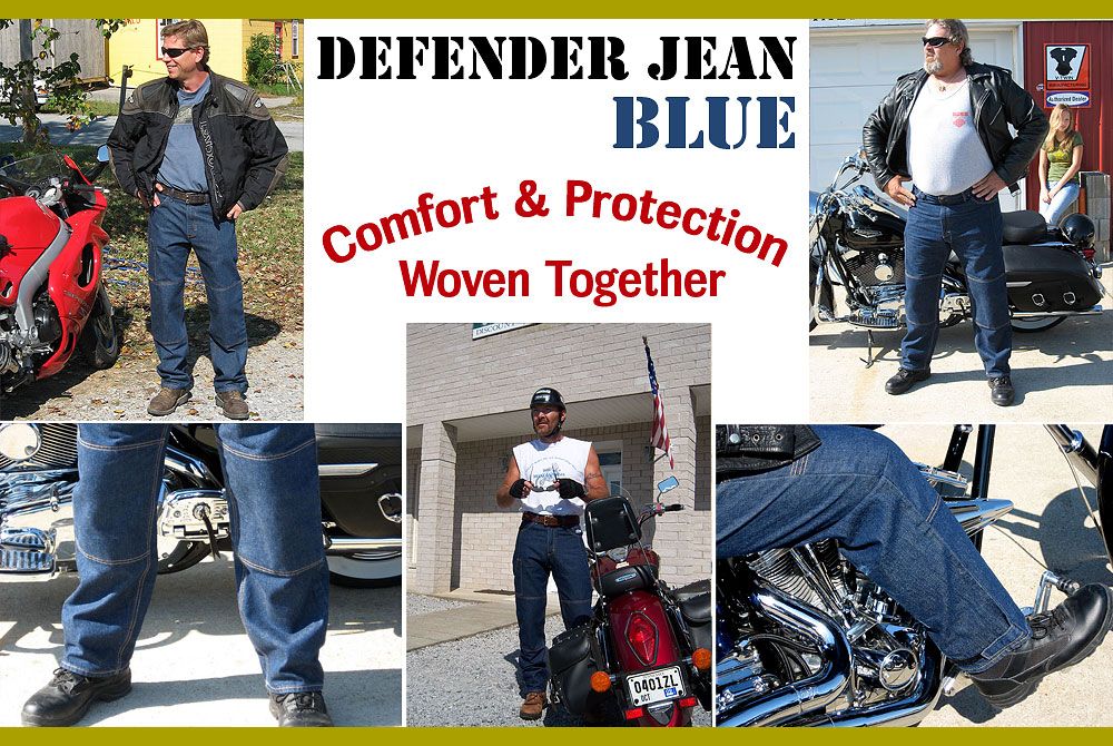Мотоциклетные джинсы American Made Defender® прикрывают вас там, где это необходимо, но при этом настолько удобны, что вы можете забыть, что на вас надета защита от истирания. Это потому, что Defender® усилен прочным арамидным волокном в области сидалища, бедер и коленей. Мы добавили нашу фирменную вставку в промежность для дополнительного комфорта и гибкости. Кроме того, на щиколотке есть застежки-липучки и дополнительный шестой передний карман с прорезью для размещения вашего телефона. Эти джинсы Defender® изготовлены из нашего плотного предварительно выстиранного синего денима с гибким тканым защитным волокном, подшитым изнутри. Подкладка изготовлена из 50% хлопка, 40% лайкры и 10% волокна DuPont TM Kevlar®.