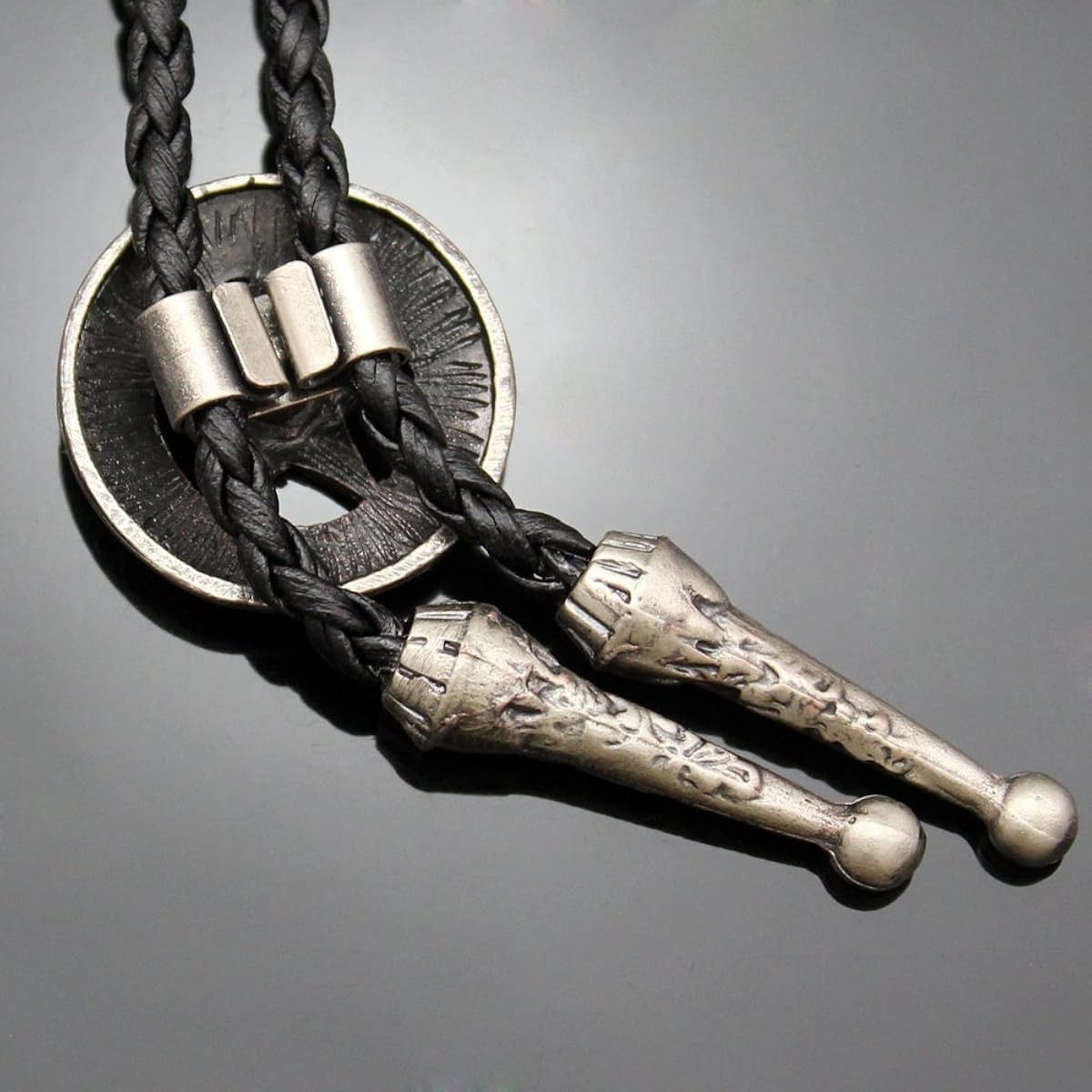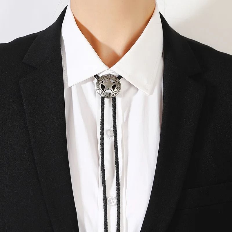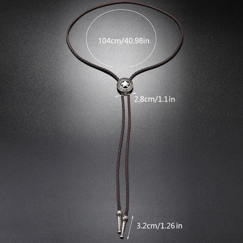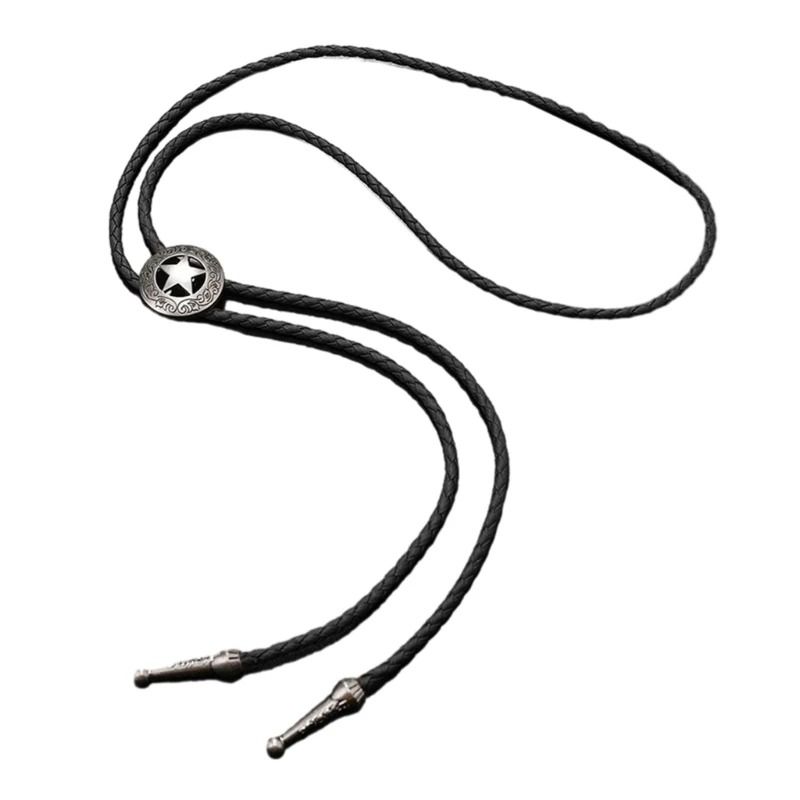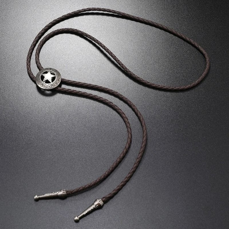 Изготовленный из сплава, этот галстук имеет плетеную вручную веревку из искусственной кожи и металлические наконечники. Подходит, как для мужчин, так и для женщин.