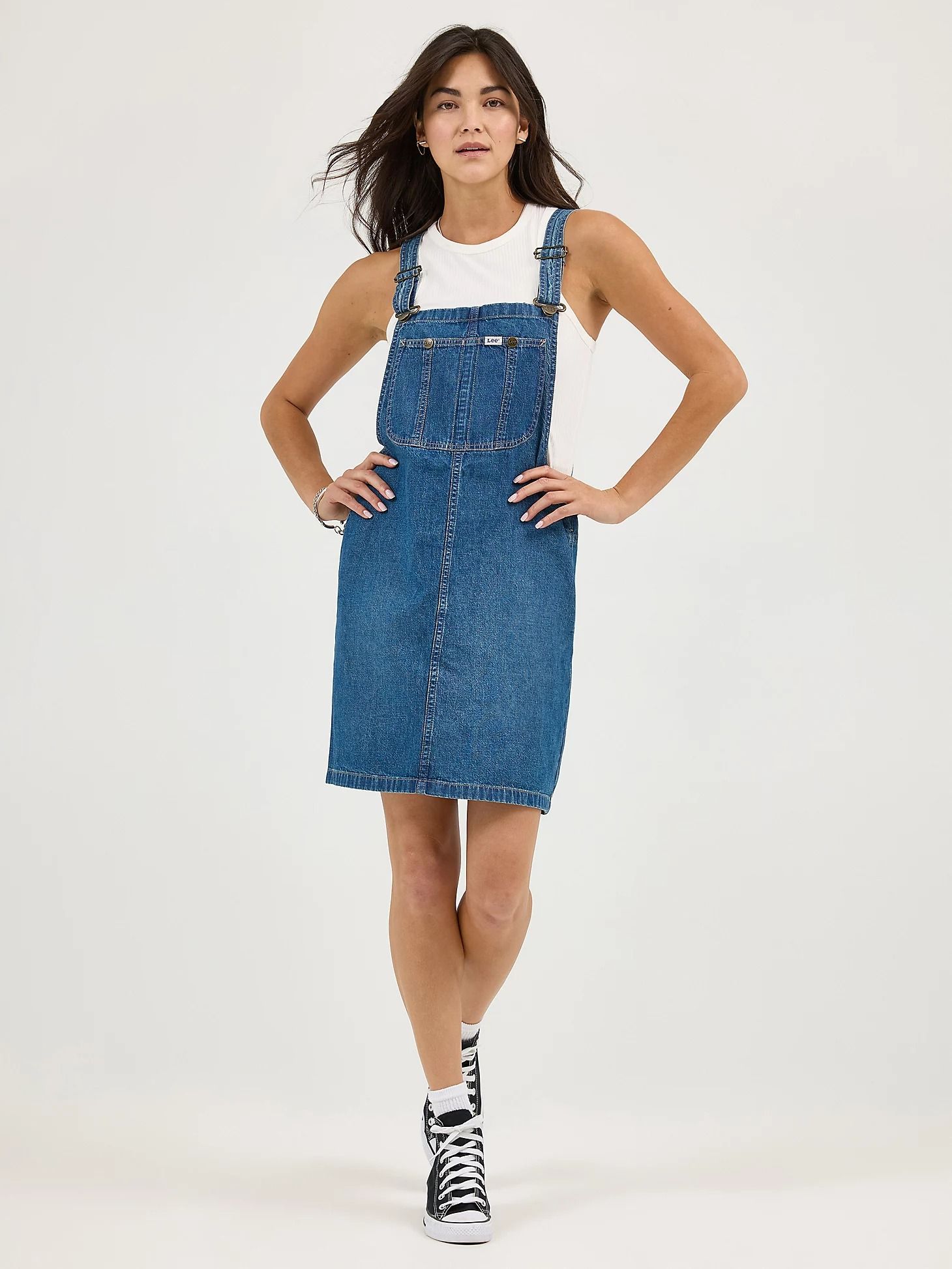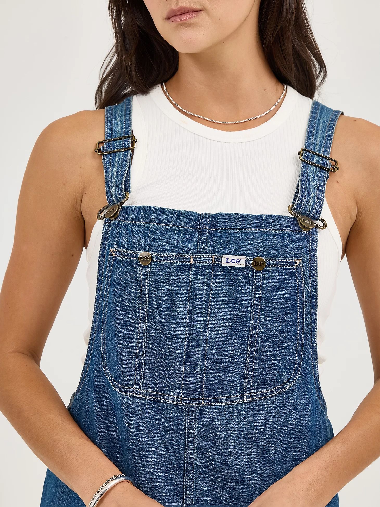 ЦветAnother DayХарактеристика ткани100% хлопок, индиго деним, шамбре, 7,5 Oz.Кройсвободный (loose)СтилькарпентерЗастежкалямки с пуговицамиВоротникквадратный вырезКарманыпятьБрендLee®КоллекцияDungareesПроизводительKontoor Brands Inc. -