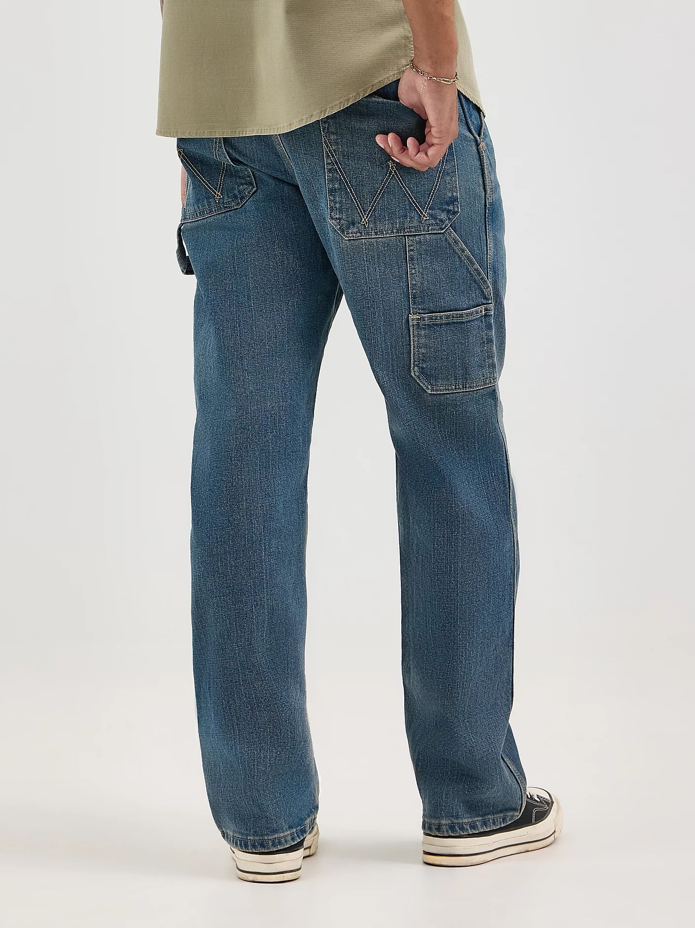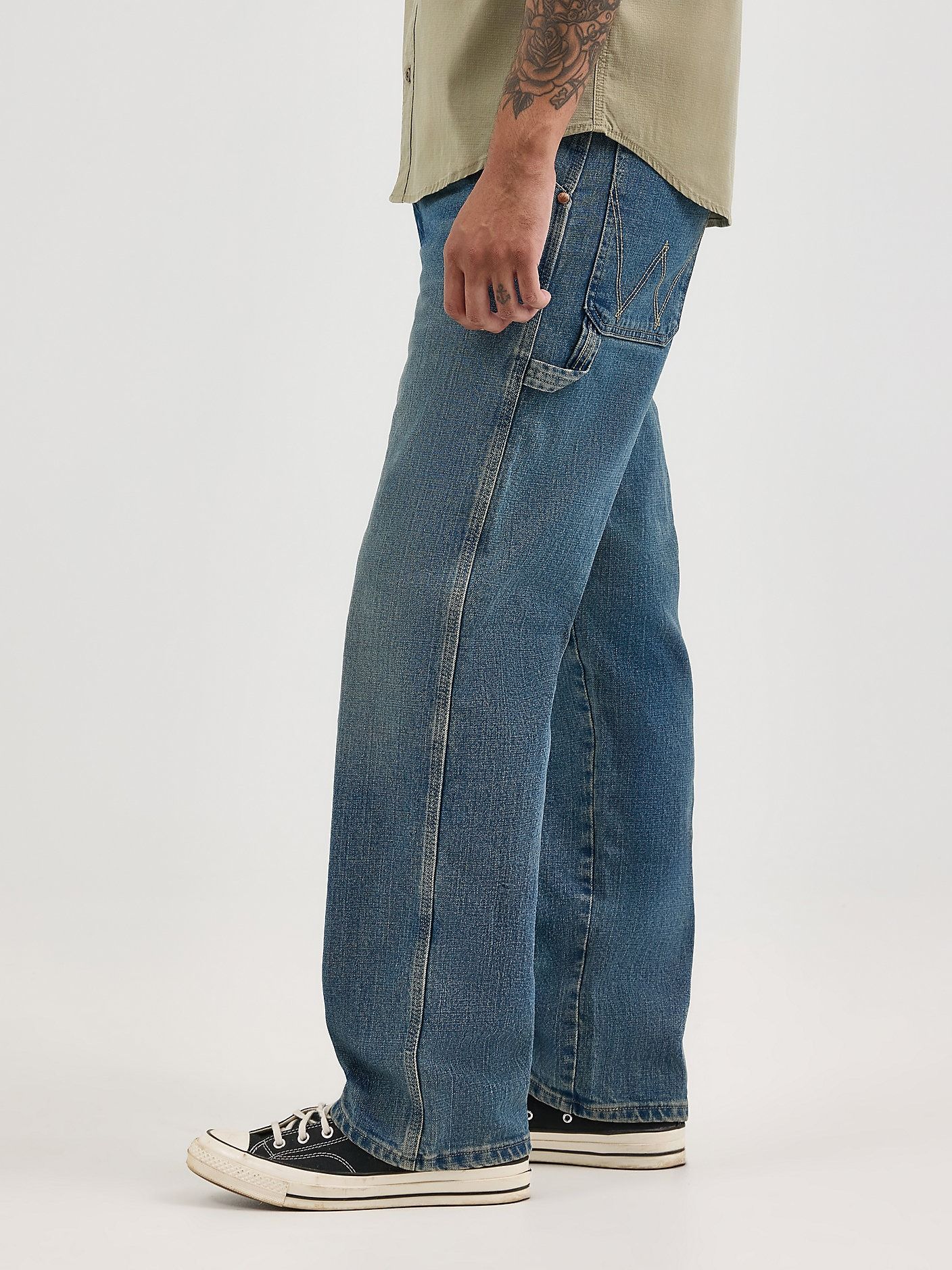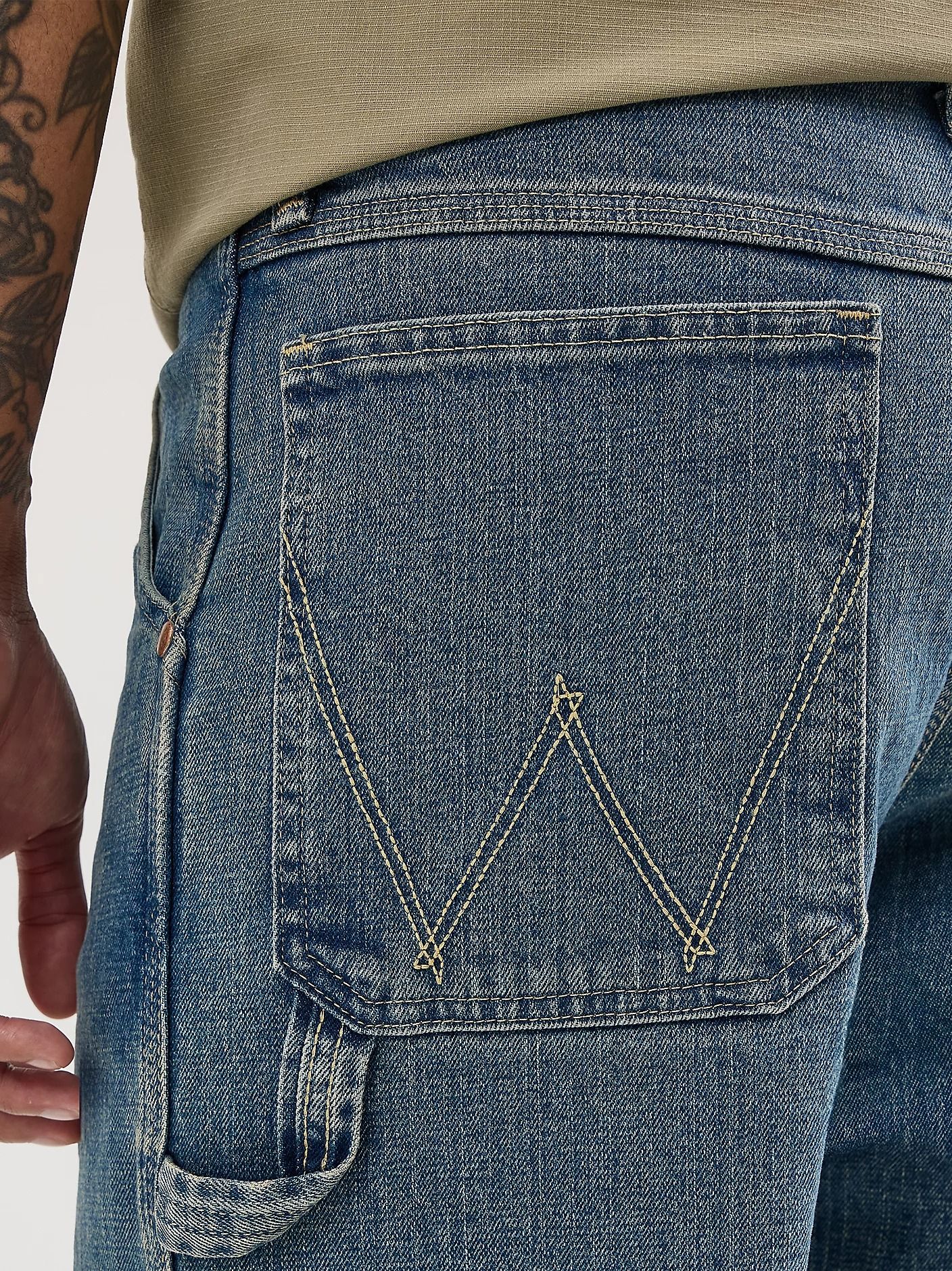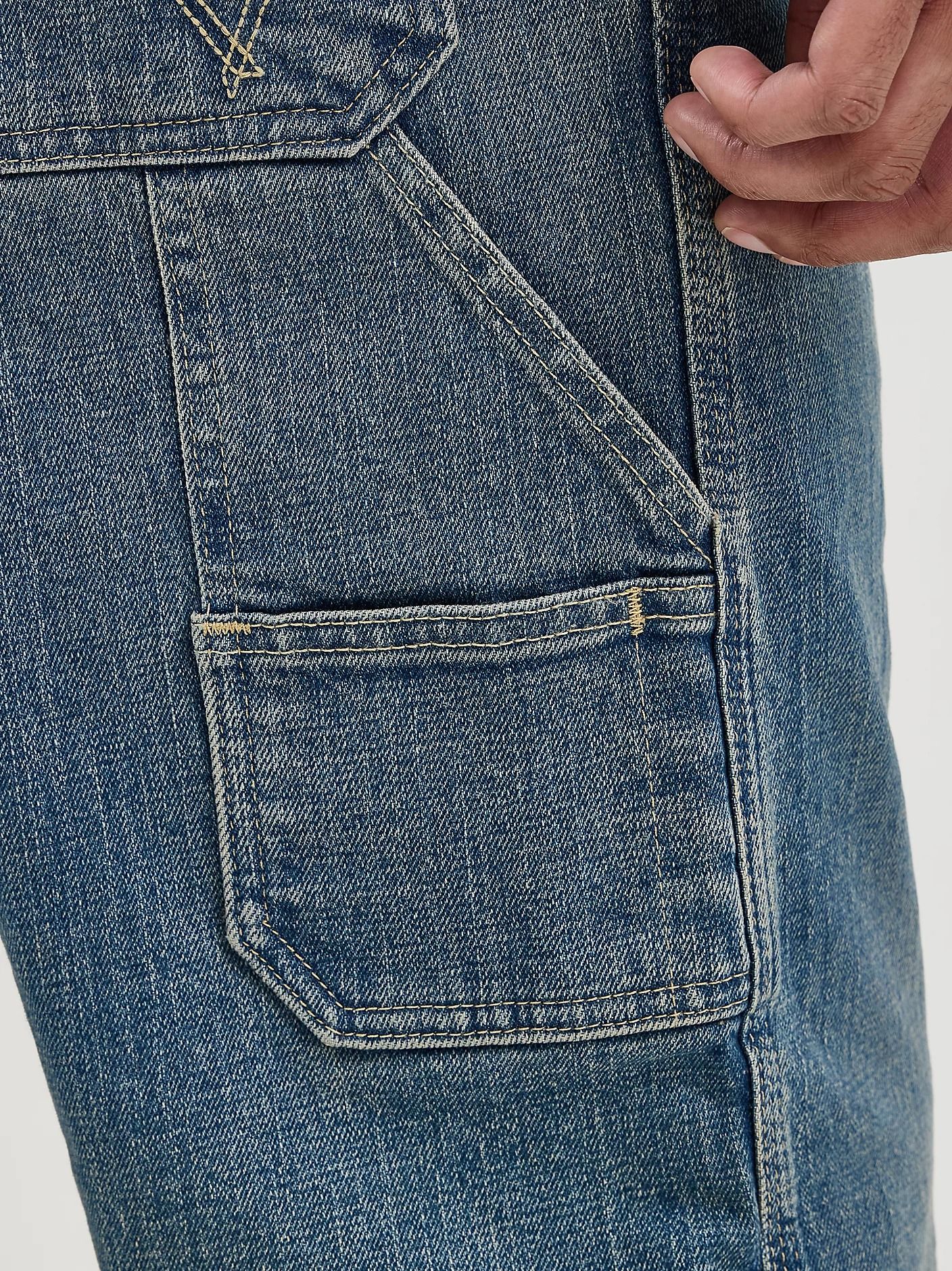 ЦветFaded BlueХарактеристика ткани99% хлопок / 1% эластан, индиго деним, диагональная саржа, 13 ozДополнительные функцииплотник (carpenter) (7карманов, петля для молотка)Кройсвободный (loose fit)Крой от коленапрямые (straight leg)Высота посадки на талиисредняя (regular rise)ШиринкамолнияКарманы7 без застёжекЗаклёпкина передних карманахБрендWranglerПроизводительKontoor Brands Inc. -