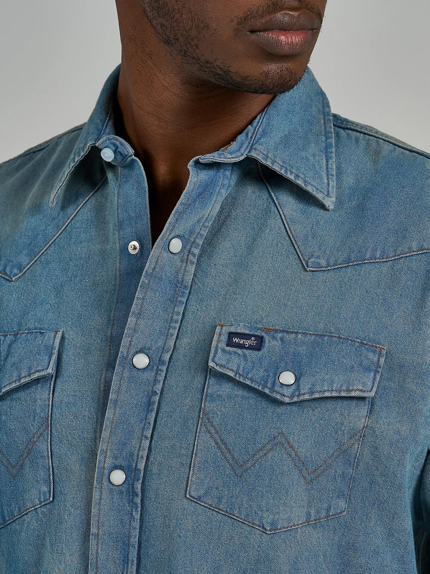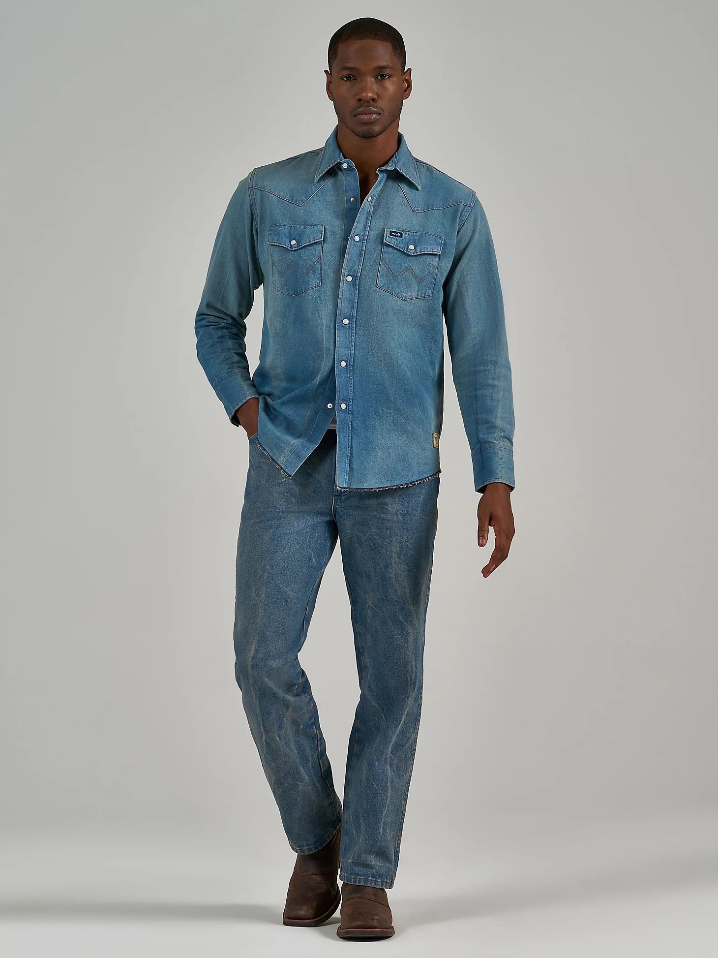 ЦветInfected PrewashХарактеристика ткани100% хлопок, индиго шамбре окрашенный в пряже, 7.25 oz.РукавдлинныйЗастежкакнопкиВоротникклассический отложнойСтильКовбойскийБрендWranglerКоллекцияThe Last Of UsПроизводительKontoor Brands Inc. -
