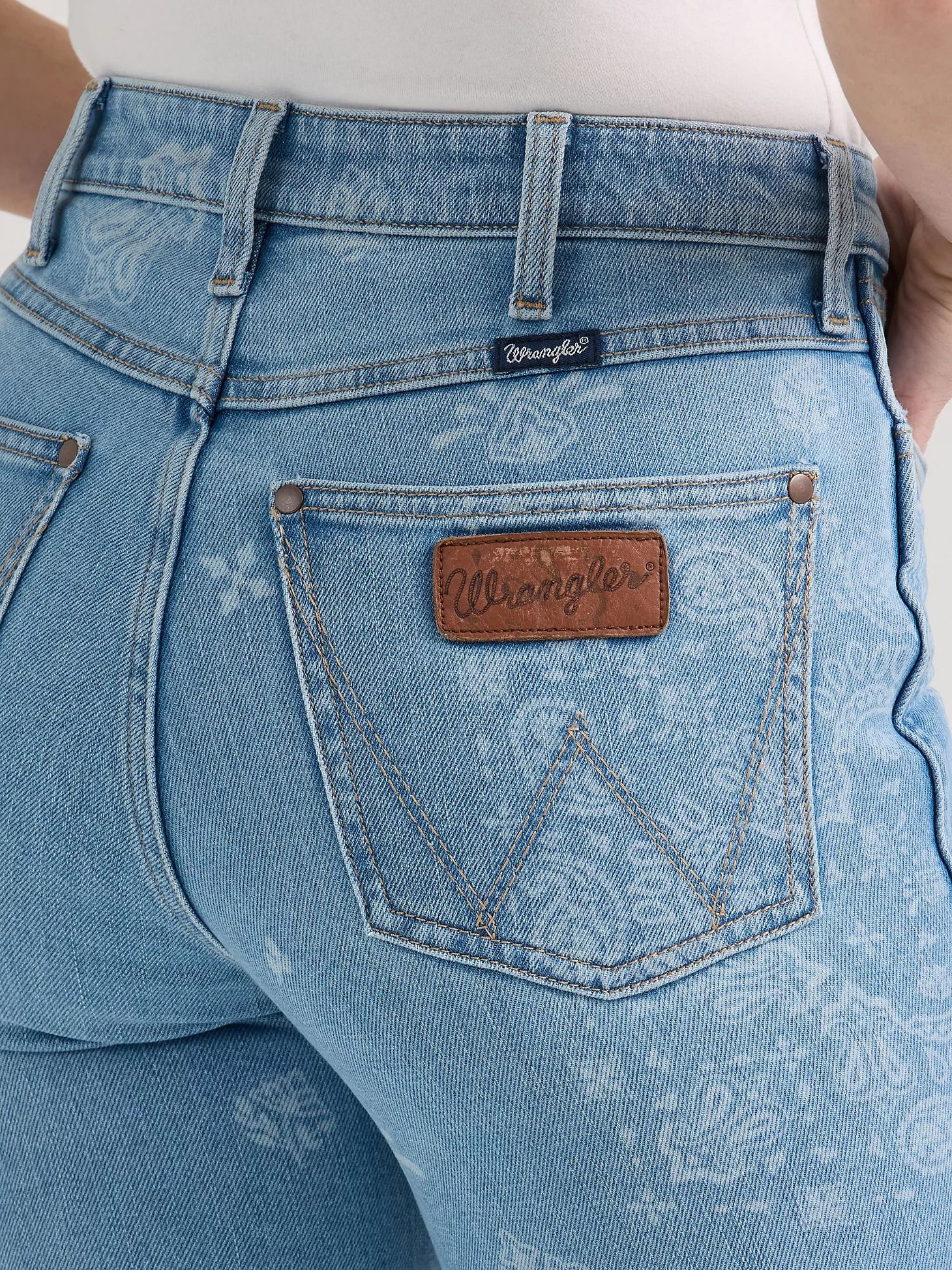 Каждой девушке-ковбою нужны джинсы с небольшим изюминкой. К счастью, наши женские джинсы Wrangler Retro® Bailey High Rise Printed Flare Jean обладают этим в избытке. Они имеют забавный рисунок пейсли, нанесенный лазером для создания крутого двухцветного образа. Они также имеют длинный, стройный силуэт, который подчеркивает вашу фигуру, и расклешенные штанины, чтобы добавить немного ретро-стиля любому наряду. Эти расклешенные джинсы также имеют фирменные детали, включая карманы с застежкой в виде буквы «W» и нашивку с логотипом в виде веревки.