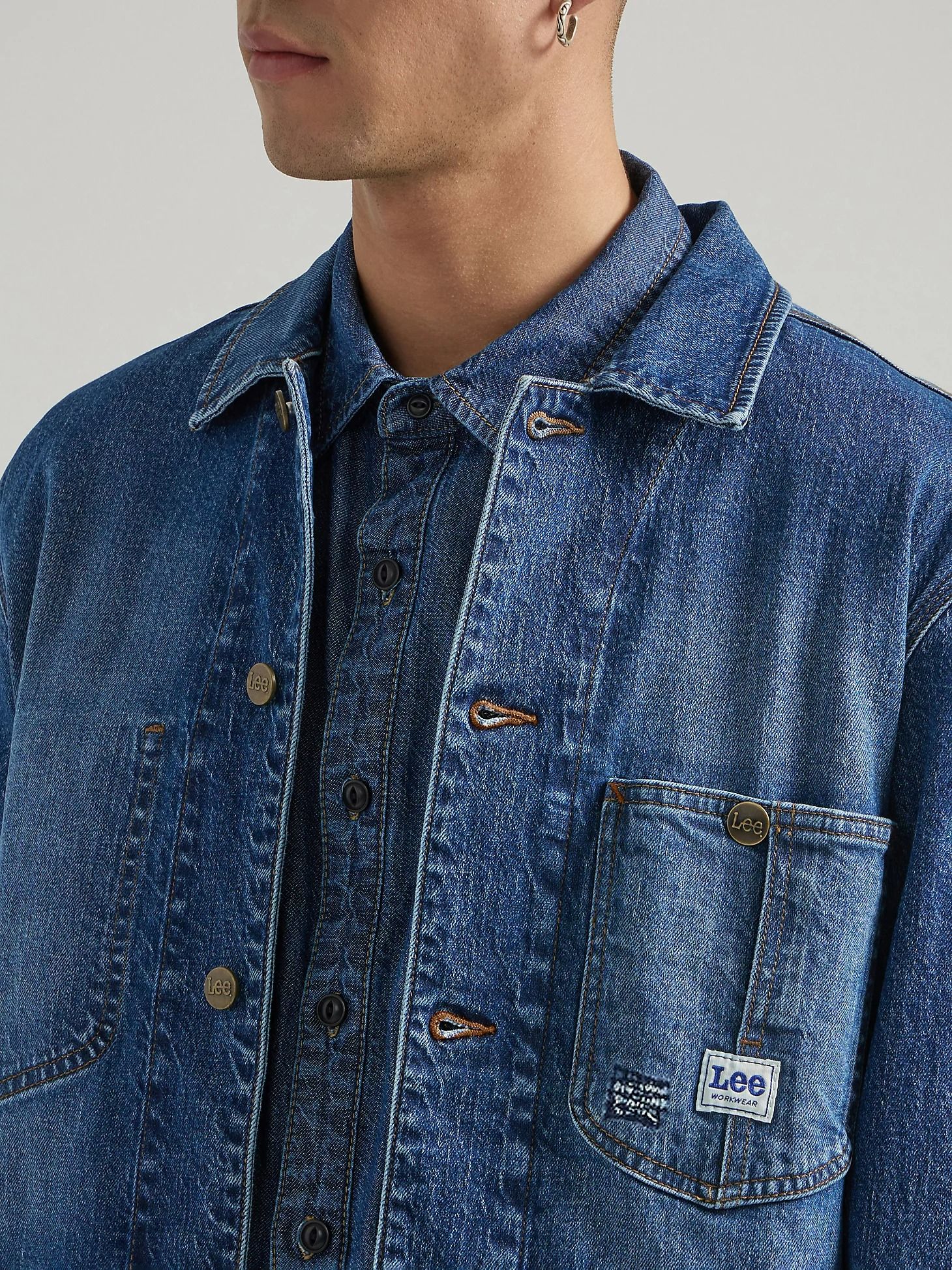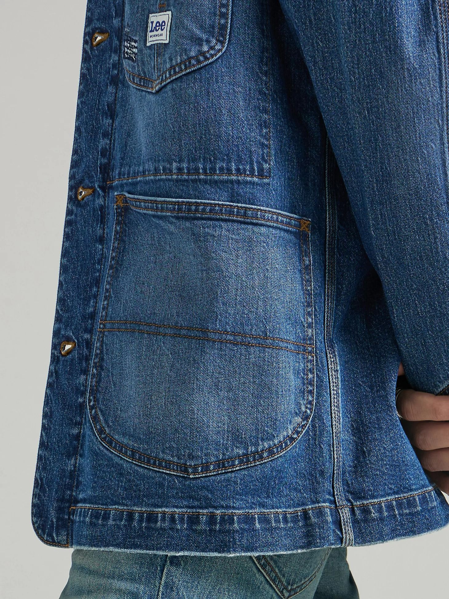 ЦветMid WashХарактеристика такани95% хлопок, 3% эластрелл, 2% спандекс, индиго деним, диагональ. 11.5 Oz.СтретчестьПодкладкабез подкладаСтильРабочая одеждаЗастёжкапуговицыРукавдлинный, две пуговицы, регулируемый манжетСилуэтпрямойКарманычетыре наружныхВоротникотложнойБрендLeeПроизводительKontoor Brands Inc. -