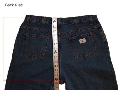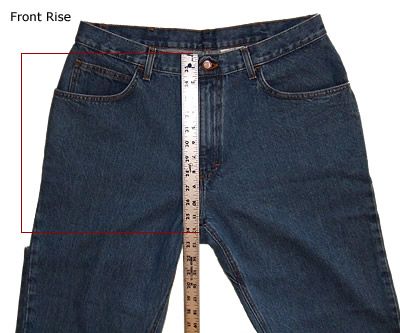 Rise важен тем, кто выбирает джинсы по высоте посадки на поясе. Измерить, что Вам предлагается – очень просто. Той же рулеткой, что мерили ногу – измеряете высоту от пояса до паха на ваших любимых, старых штанах спереди и сзади. Обычно производители указывают оба размера. Кроме этого существует крой "слауч" (slouch) - горбатый, когда задний край выше переднего очень значительно - в 2 раза и более. Обычно на такой крой производителем всегда даётся 2 размера.